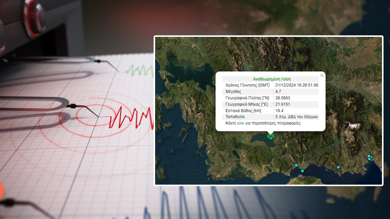 Ισχυρή σεισμική δόνηση μεγέθους 4,7 βαθμών της Κλίμακας Ρίχτερ σημειώθηκε στις 18:30 του Σαββάτου (21/12) στο Θέρμο Αιτωλοακαρνανίας, πολύ κοντά στη λίμνη Τριχωνίδα.