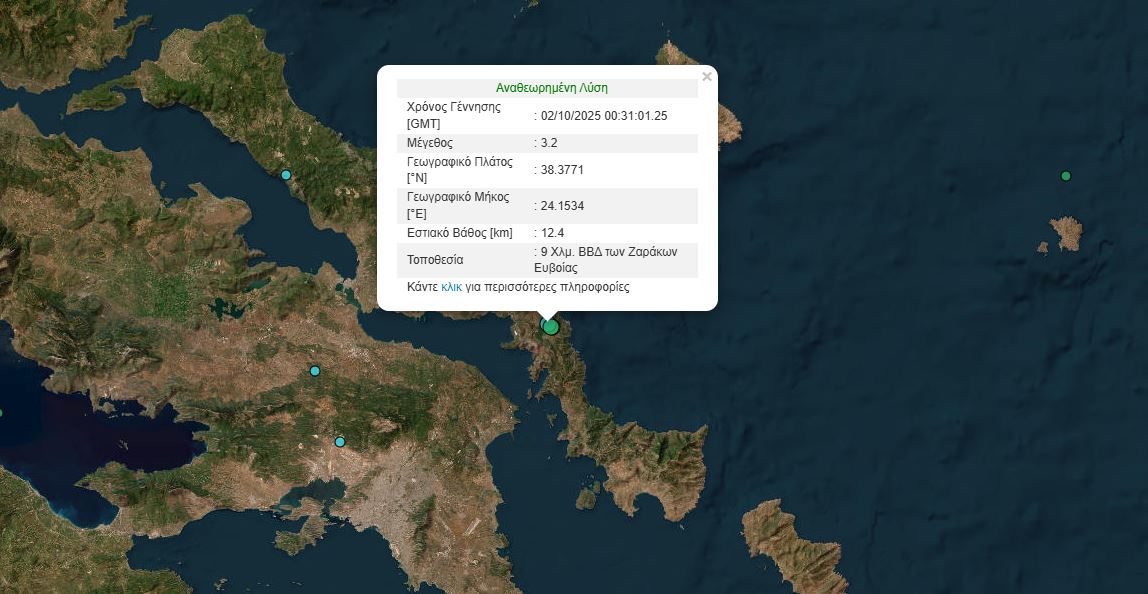 Συγκεκριμένα, σύμφωνα με την Αναθεωρημένη Λύση του Γεωδυναμικού Ινστιτούτου Αθηνών ο σεισμός μεγέθους 3,2 βαθμών της κλίμακας Ρίχτερ σημειώθηκε 9 χλμ. βόρεια βορειοδυτικά των Ζαράκων Ευβοίας και σε εστιακό βάθος 12,4 χλμ.