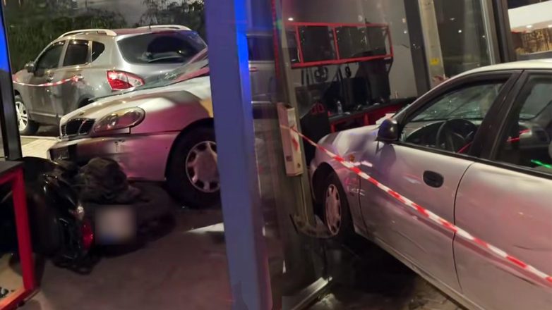 Κατά τη διάρκεια της καταδίωξης, ο οδηγός του ΙΧ έχασε τον έλεγχο του οχήματος στην οδό Ιωάννου Μεταξά και προσέκρουσε, αρχικά, σε δύο σταθμευμένες μηχανές και μετά σε πρόσοψη ίντερνετ καφέ, χωρίς ευτυχώς να σημειωθεί κάποιος τραυματισμός.