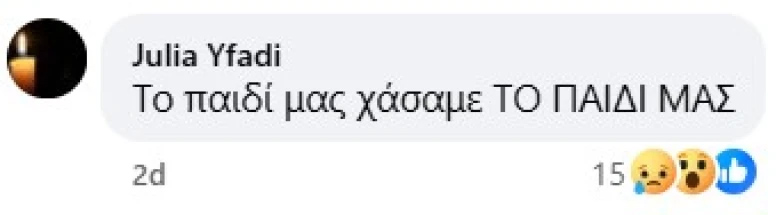Στην παραπάνω ανάρτηση, η ίδια η μητέρα σχολίασε «Το παιδί μας χάθηκε»